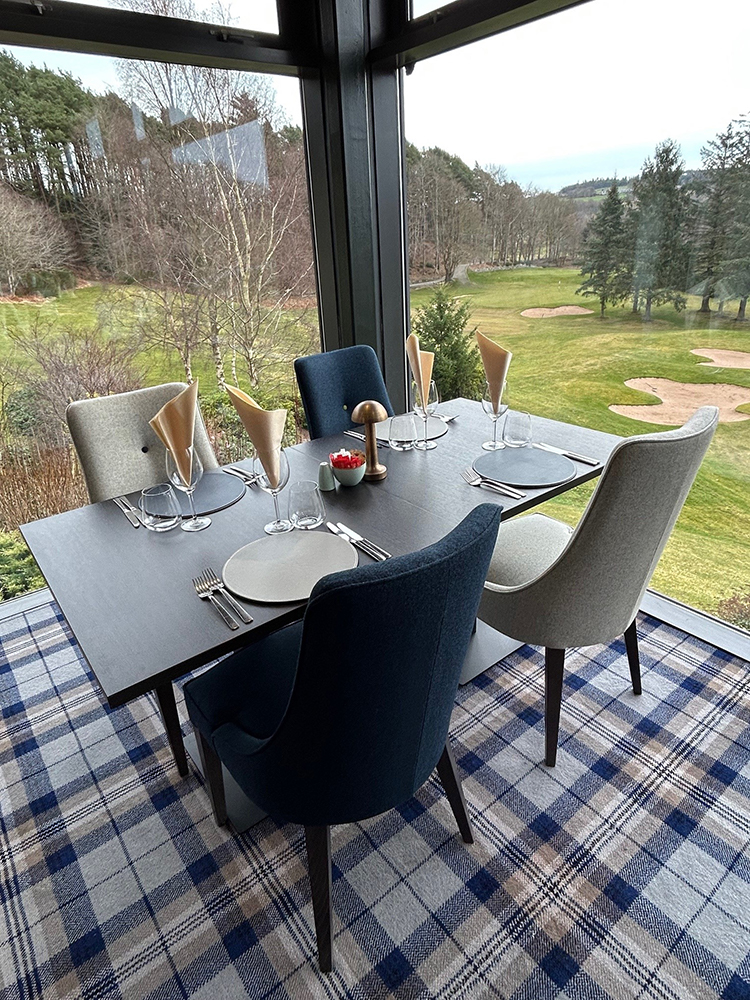 Founded in 1902, Deeside Golf Club is one of the North East’s most prestigious clubs, enjoying incredible panoramic views of the Dee Valley and providing an exceptional golfing and social experience for members, guests and visitors. We were privileged to be invited to work closely with our client on the recent refurbishment of their clubhouse interior.