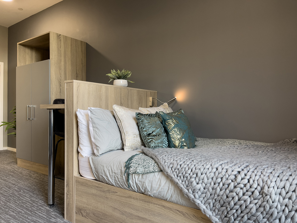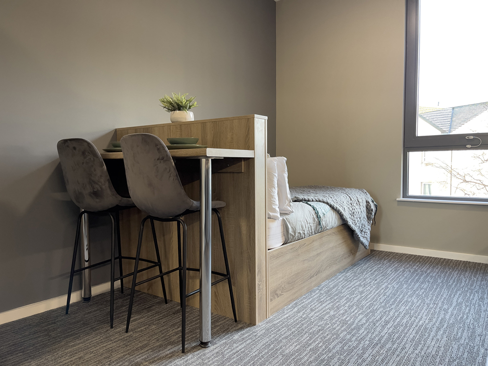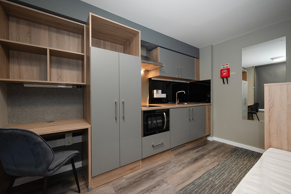 We transformed the 8-storey building into 101 modern studios, offering everything from single rooms to one-bedroom apartments and fully accessible options, so there’s something to suit different needs and budgets. Each studio comes with its own en-suite bathroom, kitchen, and study space.