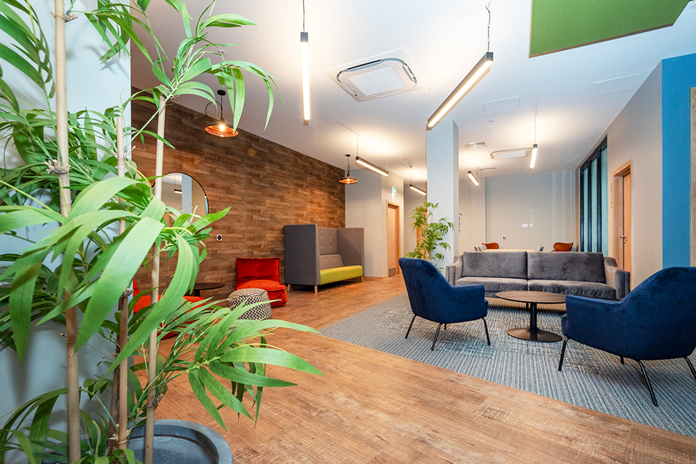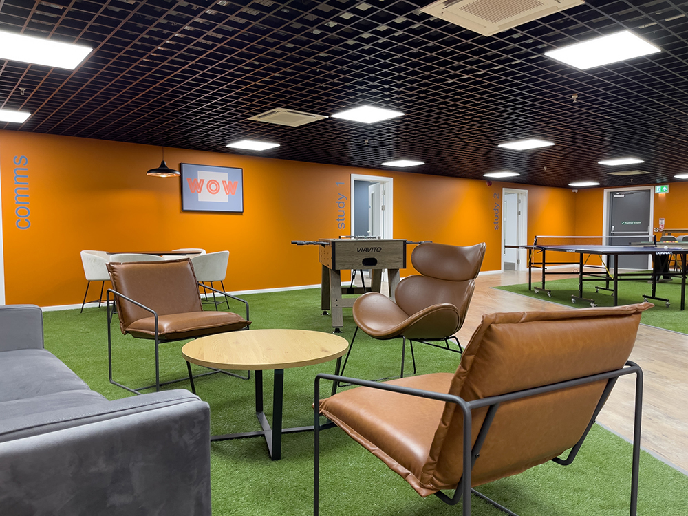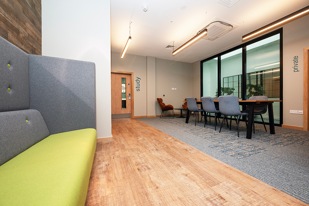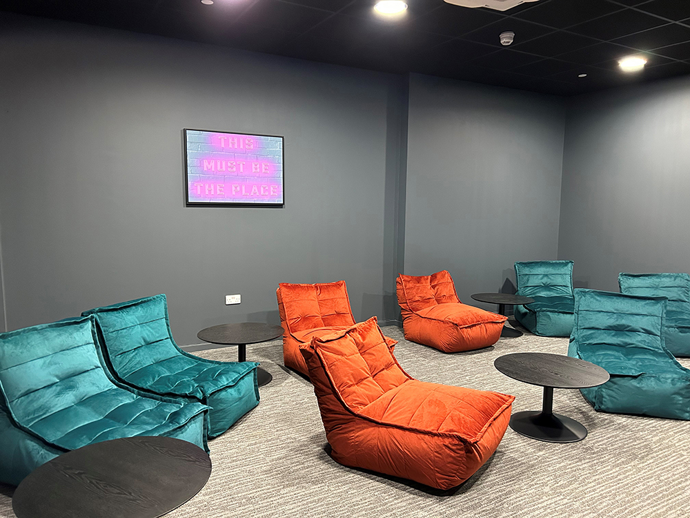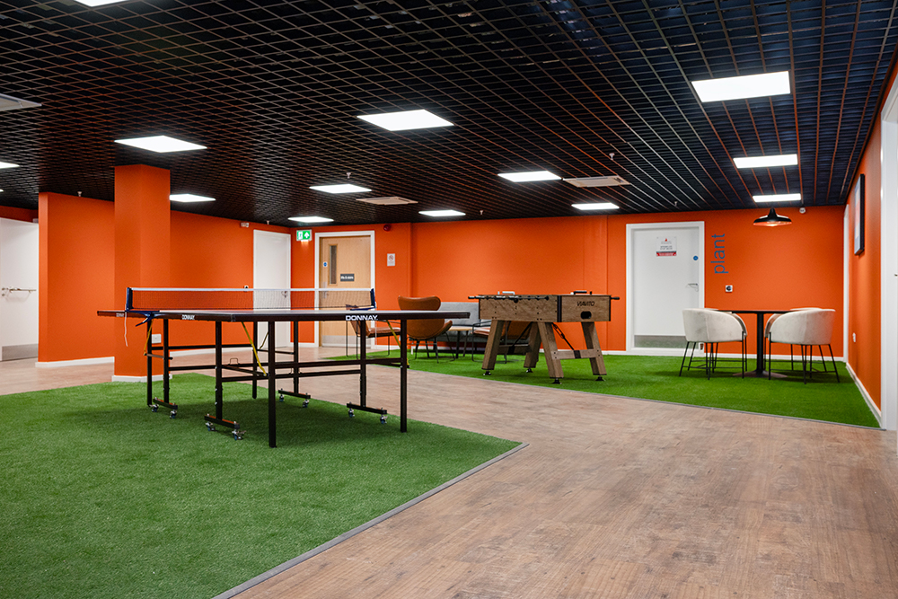 The old basement car park was particularly challenging, but we are really pleased with how it’s been transformed into a vibrant games room, additional study areas, and secure bike storage.